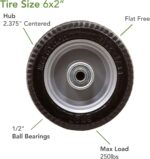 - Six-inch tire diameter and two-inch tire width with a 2.375″ centered hub and 1/2″ bearings